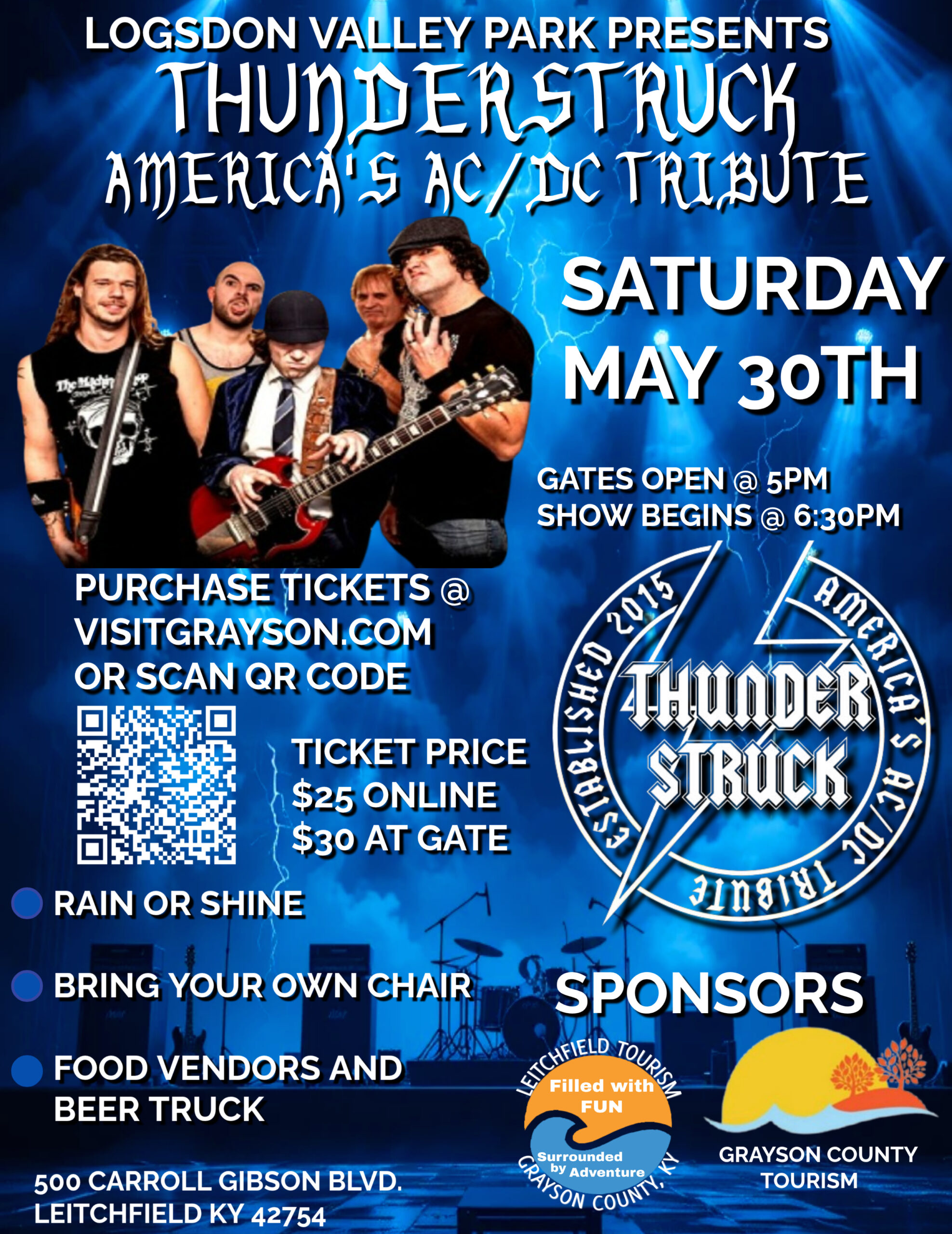 Thunderstruck – America’s AC/DC Tribute is coming to Logsdon Valley Park on Saturday, May 30th! Gates open at 5:00 PM Show starts at 6:30 PM 🎟️ Tickets: $25 online at VisitGrayson.com or by clicking the link below https://graysoncountytourism.ticketspice.com/thunderstruc... $30 at the gate 💺 Bring your own chair 🌧️ Rain or shine 🍔 Food vendors & […] |